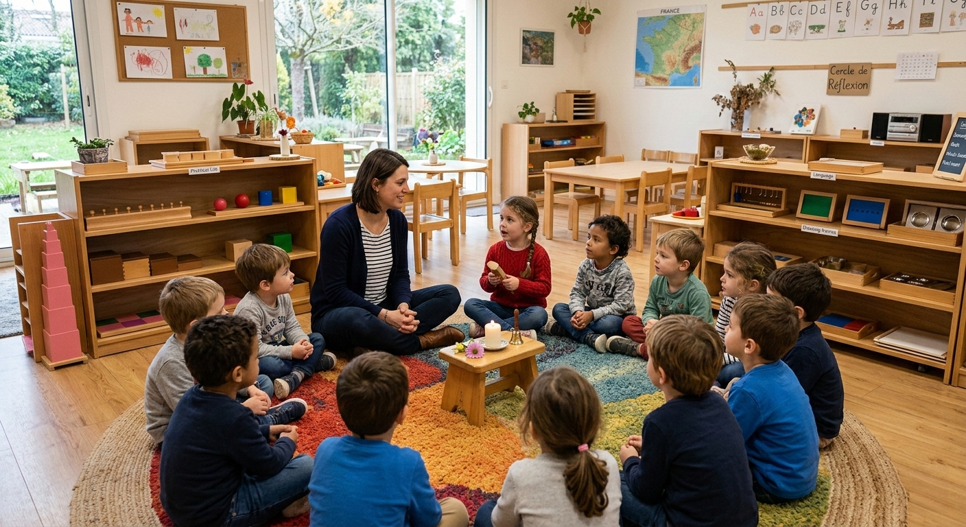 L’enfant apprend ainsi à coopérer, à respecter les autres et à développer sa curiosité dans un environnement calme, sécurisant et stimulant.
